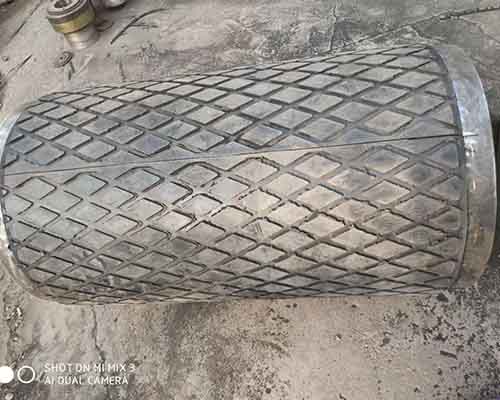 滾筒包膠后會有什么作用呢?包膠后的滾筒能有效保護(hù)金屬滾筒表面不被磨損,滾筒包膠有菱形花紋或人字形花紋幾種方式,能增大橡膠板表面摩擦力,能有效的防止?jié)L筒與輸送帶之間的滑動摩擦,減少皮帶打滑,減少滾筒表面的物料粘結(jié),從而減小皮帶的跑偏和磨損,提高運行效率,使?jié)L筒與皮帶同步運轉(zhuǎn),從而保證皮帶輸送機的、大運量的運轉(zhuǎn)。